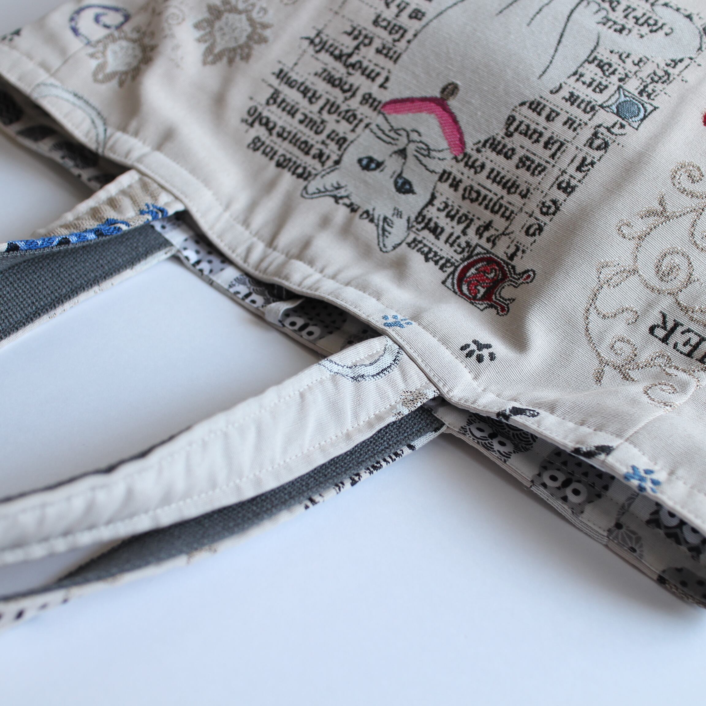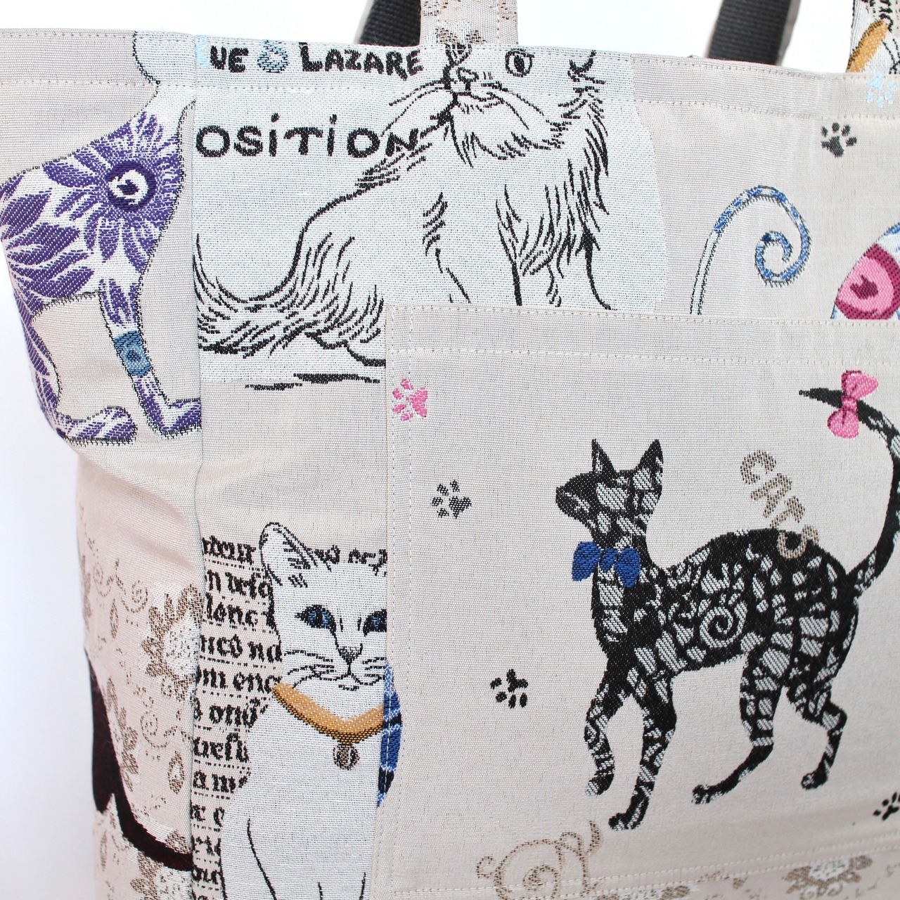 ジャカード織トートバッグ 猫 スペイン製 /フランス製生地 日本縫製