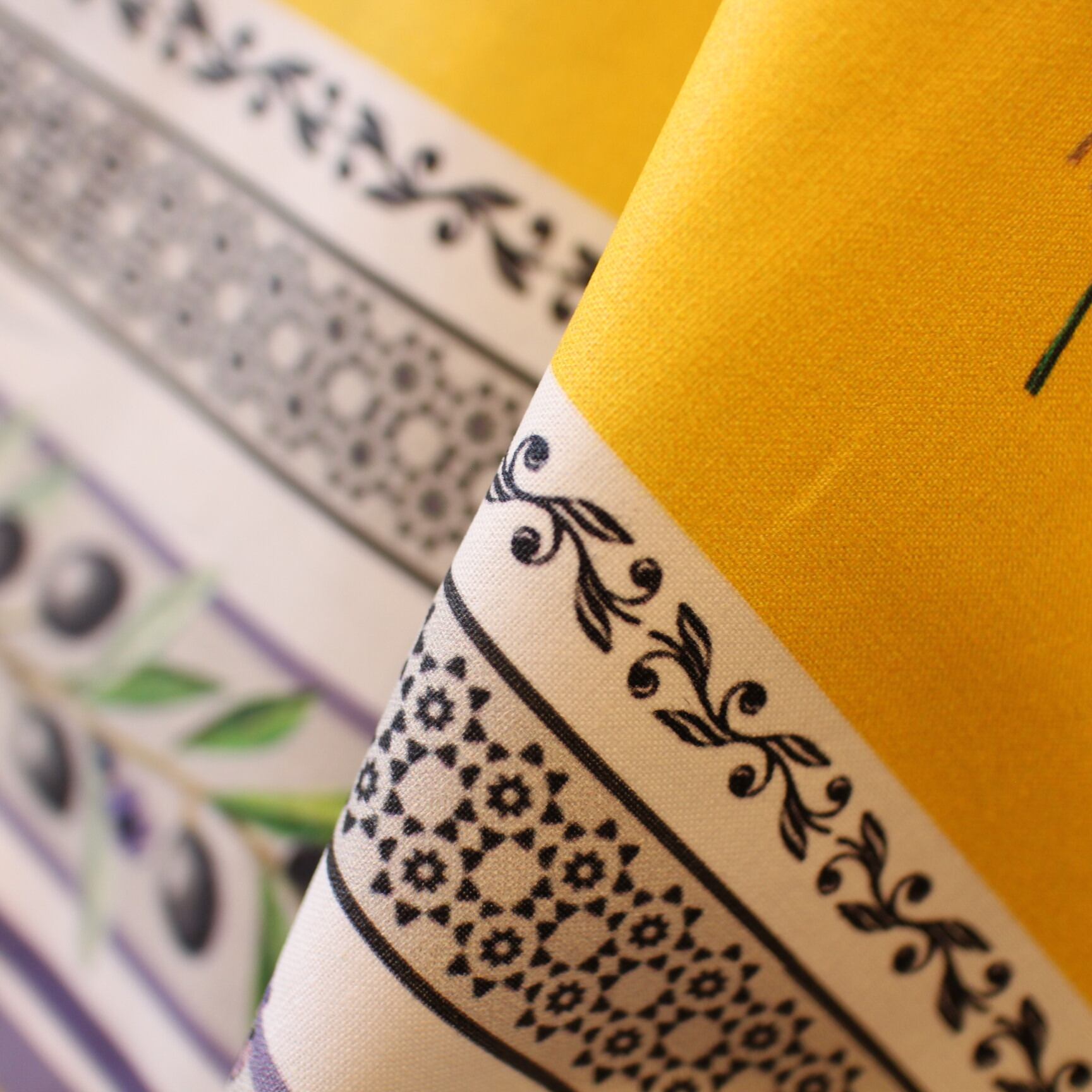 洗練されたデザインと鮮やかな発色が美しい、フランス製テーブルクロスです。