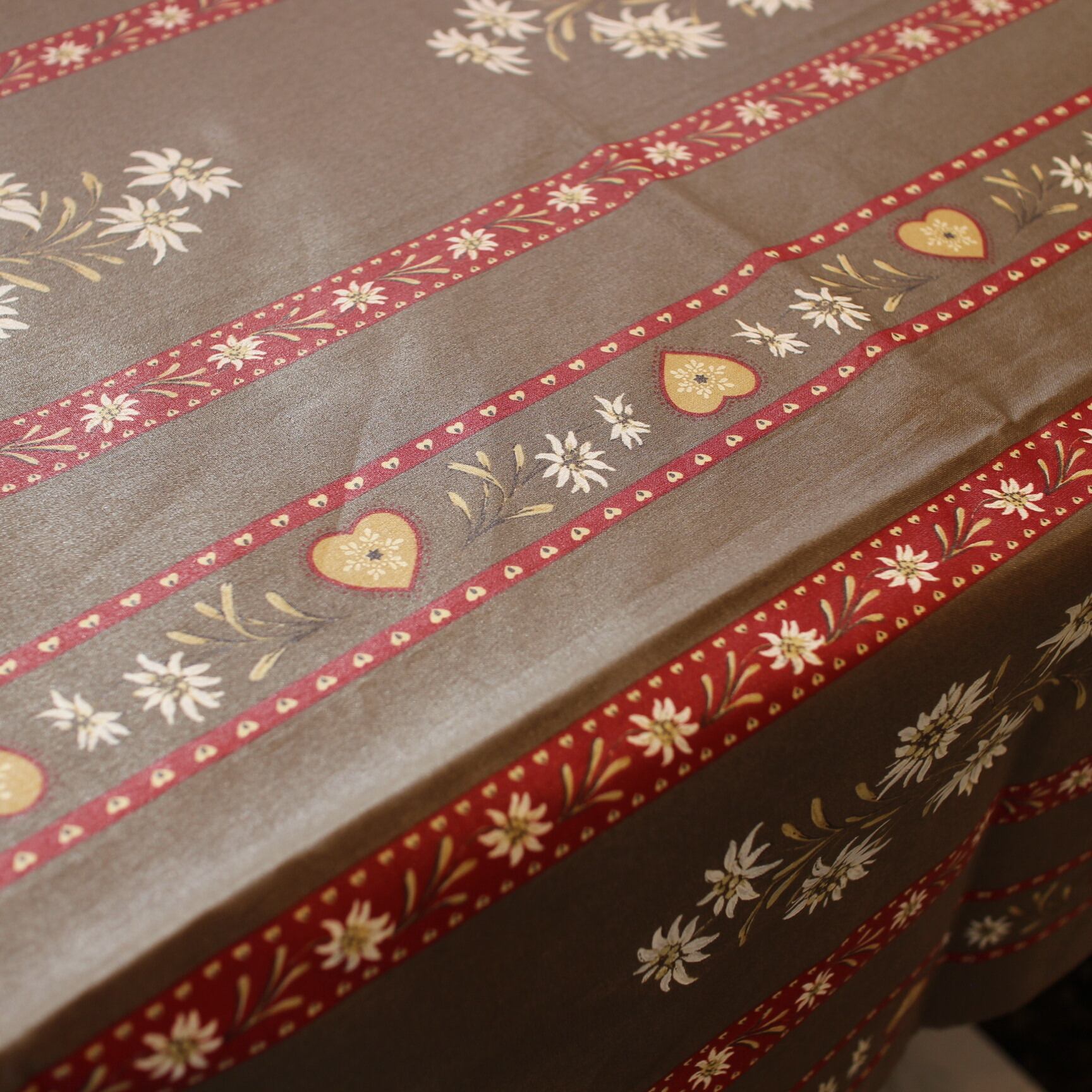 洗練されたデザインと鮮やかな発色が美しい、フランス製テーブルクロスです。